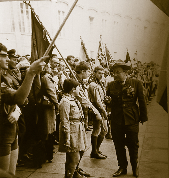 Druhý snímek je z nádvoří pražského Hradu při volbě prezidenta republiky Ludvíka Svobody na jaře 1968 – na fotce je, od jejího levého kraje, vidět polovina skauta v brýlích se žerdí vlajky v ruce. Jde o Sibiřana z psohlavecké Jedenáctky (držel také v ruce Svojsíkovy Základy junáctví na něž Rudolf Plajner obnovil svůj skautský slib při slavné první schůzi v Holešovické Domovině na jaře 1968 – v té samé Domovině, v roce 1941-42, se, Menharte, přestěhovaly Rychlé šípy ze zadních stánek časopisu na gramofonové desky, to ale nepochybně víš).