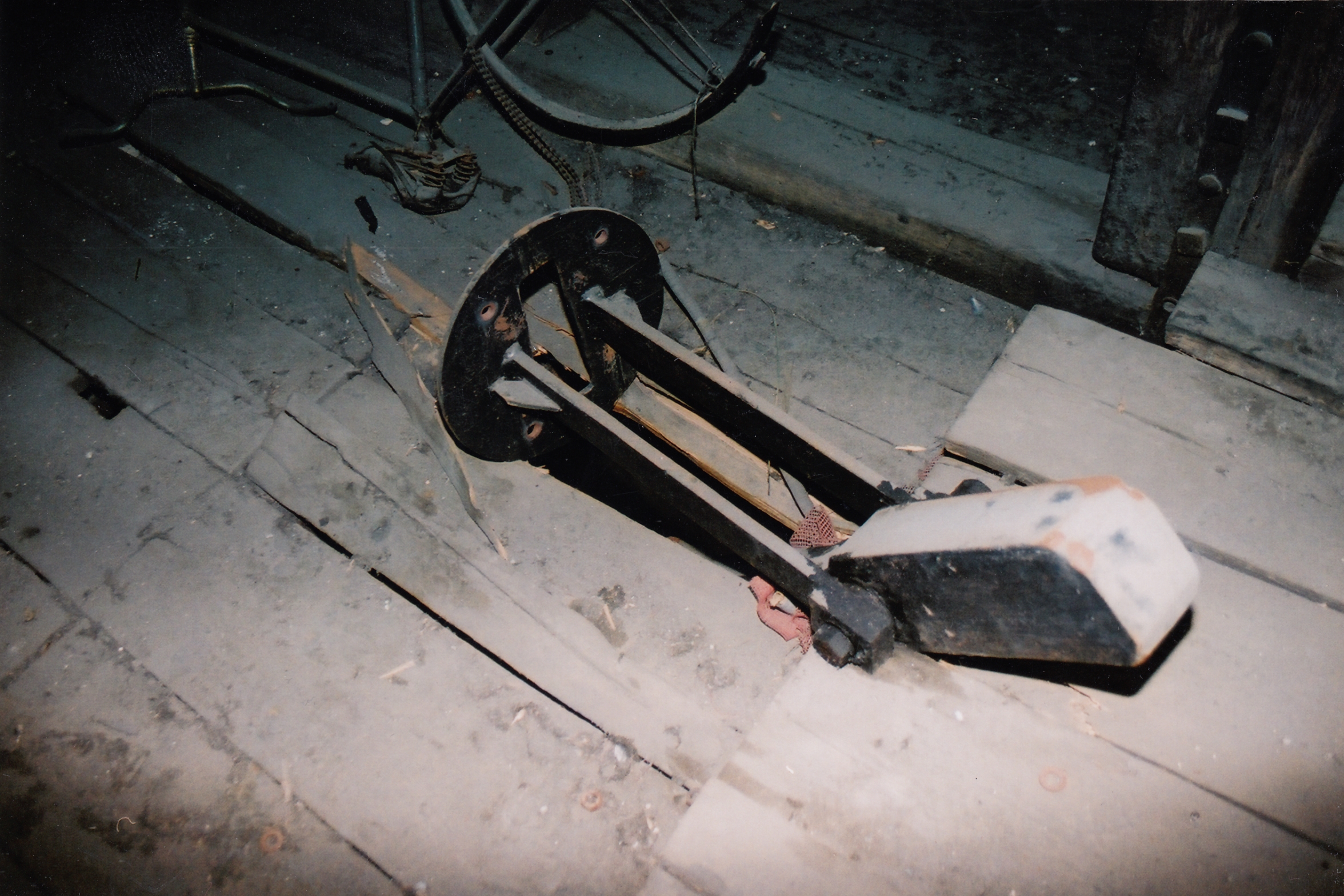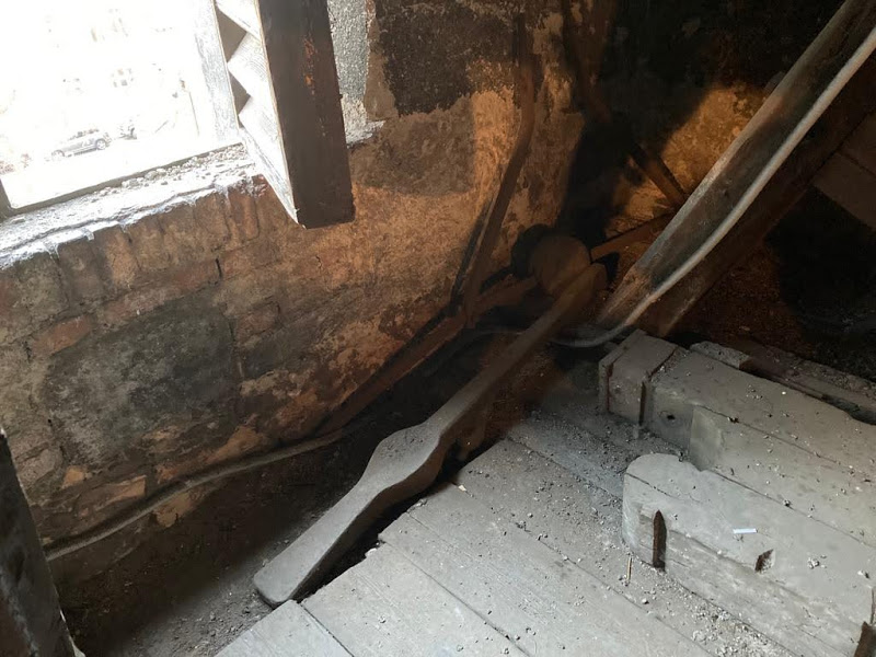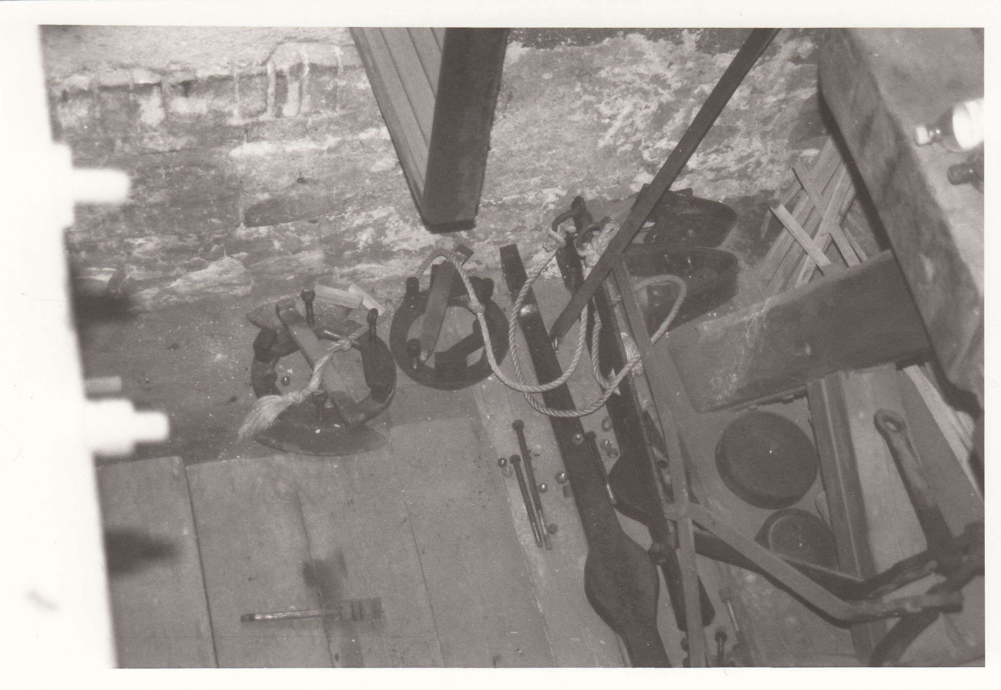 Ještě v dubnu 2003, kde se vytrhlo srdce Sv. Petra ze závěsu a zabořilo se do podlahy pod zvonem, bylo ve zvonici staré Tleskačovo (?) kolo, které je vidět na webu třeba na (E).