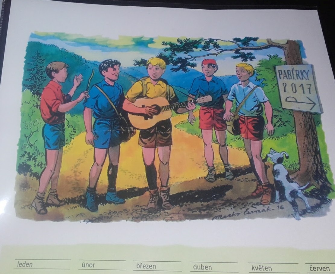 Marko Čermák rozdával na úterním koncertu Paběrek v Praze kalendář fm A4, kde v kalendáriu byly zvýrazněny dny koncertů Paběrek na Vinohradech. Kalendáři vévodila přiložená kresbička Rychlých šípů.