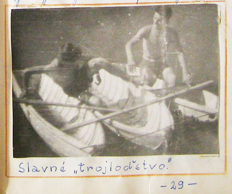 Jindy se vypravili na tehdy celkem opuštěnou Brněnskou přehradu. Neměli sice žádnou loďku, ale přinesli si s sebou válcovité člunky, které byly původně saněmi, které v německých horských jednotkách plnily úkoly při transportu zraněných. Jenže saně nebyly určeny k plavbě a byly značně vratké. Tajná stopa si však opět poradila a svázala je do tzv. Trojloďstva, se kterým pak brázdili přehradu.