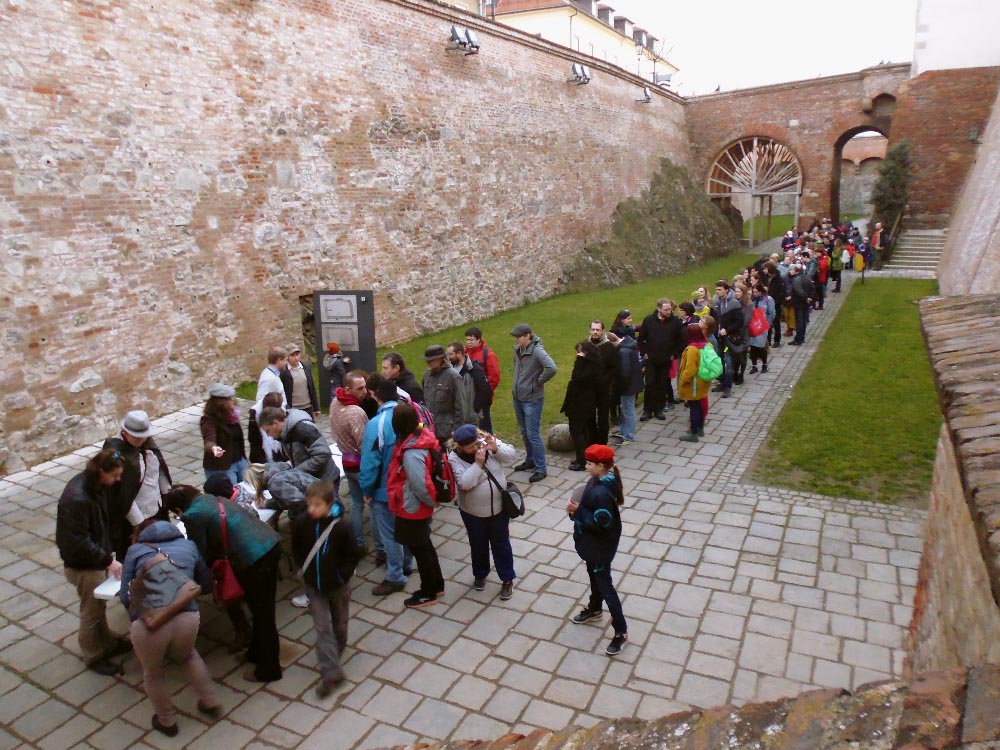 | O vyhlášení výsledků a předání cen ve hře Stínadla tudy byl opravdu veliký zájem. V příkopě brněnského hradu Špilberka se sešlo přes 200 účastníků a 20 organizátorů. |