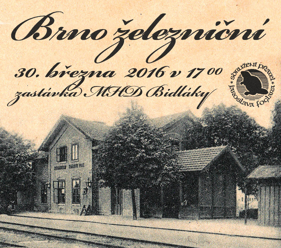 Jedním z programů, které navazují na úspěšnou hru Stínadla tudy, budou komentované tématické vycházky po Brně. První z nich - Brno železniční se koná již ve středu 30. března 2016 a povede po málo známých, nedostavěných či zaniklých brněnských nádražích (provádím já - Jiří Kalina, řečený Čáp). Sraz je na autobusové zastávce Bidláky v 17:00.