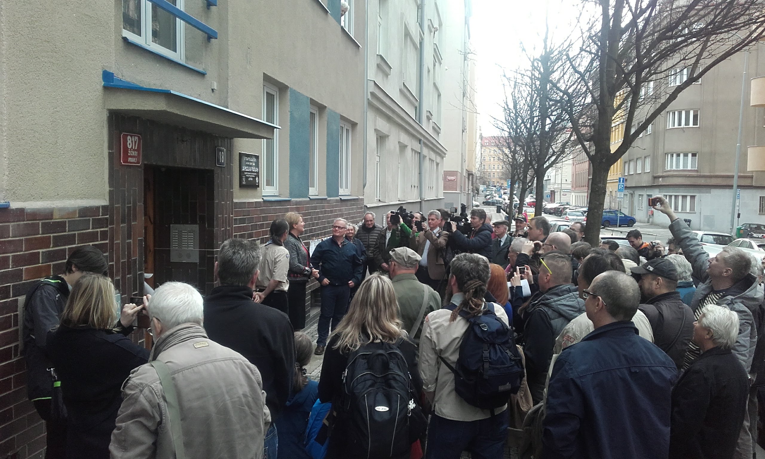Natáčení v bytě i u odhalování desky natáčel Alpín a Best z Bohouška, tak na videoreportáž se podívejte na Bohousek.cz. Natáčela tam i TV Praha a Praha 3 asi na FB. Byla tam i ČTK a někteří blíže neidentifikovatelní novináři.