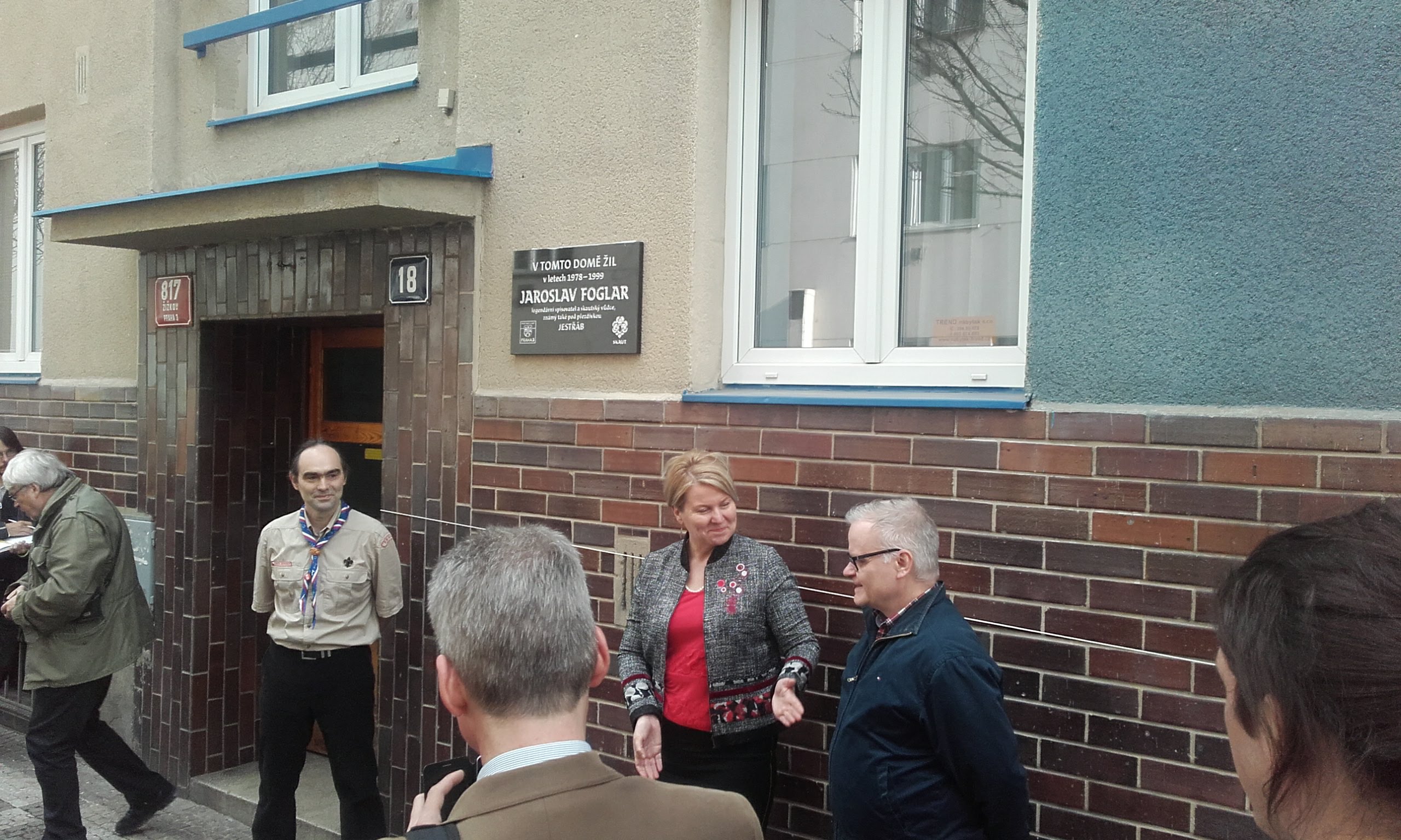 Již od 16:30 hodin si novináři fotili a natáčeli byt v doprovodu paní starostky, která se pochlubila, že Jaroslav Foglar byl zapsán jako první čestný občan Prahy 3, že mají v Betlému velké postavy z románu o Rychlých šípech, že taky měli nadaci, ale nakonec to převedli na skautskou nadaci atd., atd., Nakonec jsem ji musel při prohlídce bytu nezdvořile "utnout" pár minut před 17. hodinou, aby stihla odkrýt pamětní desku.