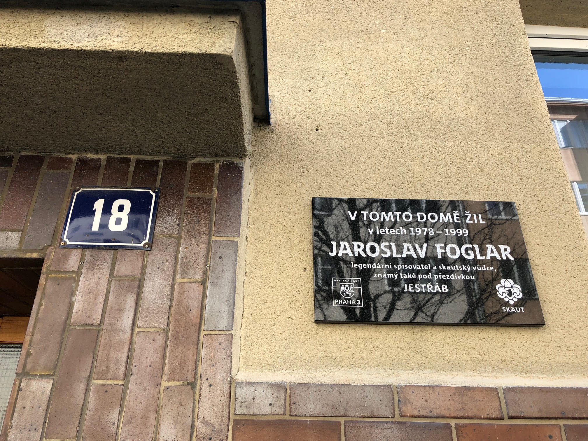 Ve čtvrtek 5. dubna 2018 byla slavnostně odhalena pamětní deska na domě, který byl posledním bydlištěm spisovatele Jaroslava Foglara. Umístění pamětní desky iniciovala radnice Prahy 3 a její starostka Ing. Vladislava Hujová desku také odhalila.