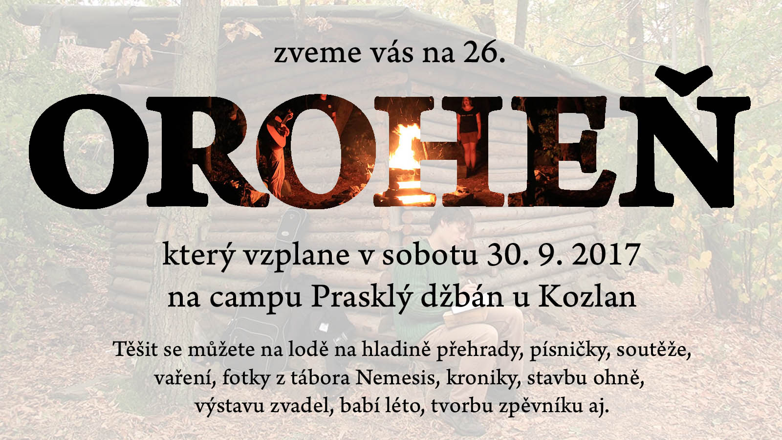 Letos již po 26. vás zveme na podzimní výroční oheň 143. KBS Orion z Adamova. Jako tradičně, vzplane v sobotu 30. září na campu Prasklý džbán na ostrově, kam můžete přijet lodí nebo sešplhat po skalách od vesničky Kozlany. Letos je také výjímečná možnost přicestovat parníkem.