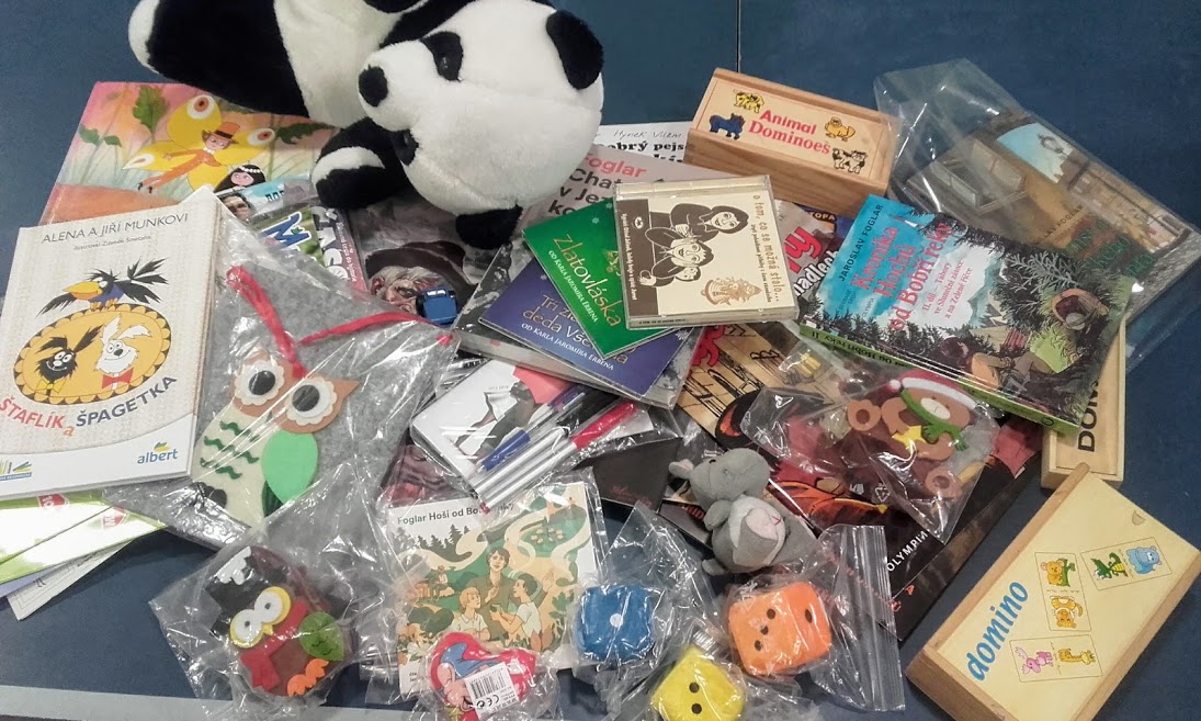 Celkem jsme posbírali 33 různých dárků, mezi nimi nechyběly ani foglarovky, které věnovali ocenění úspěšní pátrači po Rychlých šípech v Praze.