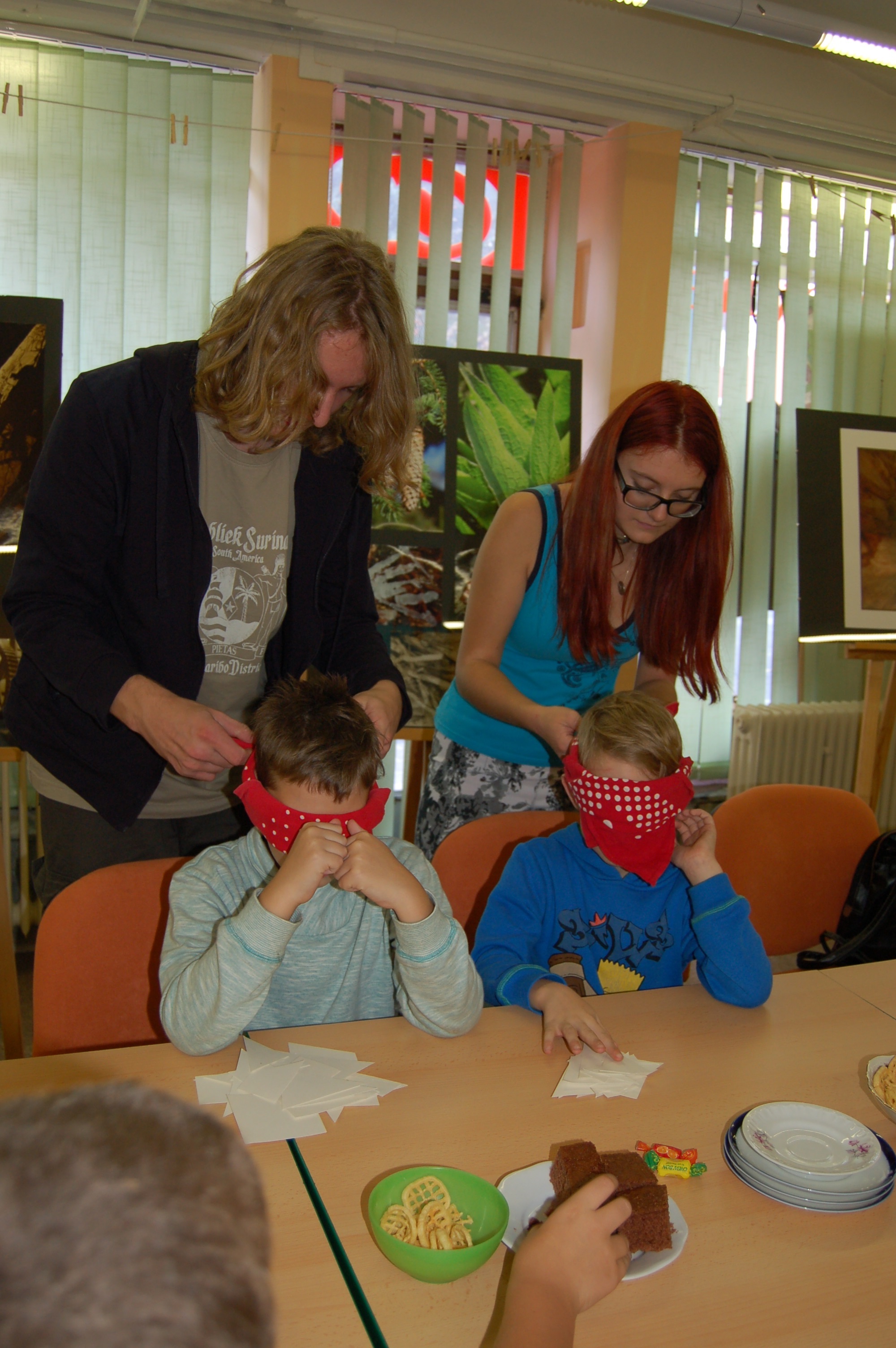 I přes časový nedostatek a dokončování na poslední chvíli, jsme byli přesně ve 13:00 připraveni v knihovně na první příchozí. I když jsme nečekali valnou účast, přesto se nás sešlo docela dost a náramně jsme si to užili. Za to odpoledne si všichni užili různé hry z knížek jako Hoši od Bobří řeky, či Devadesátka pokračuje. Jedna sice byla zdlouhavá a ne tolik zábavná, to už jsme museli účastníkům pomáhat, ale zbytek by svižnější a všichni si to užili a to nemyslíme jen děti.