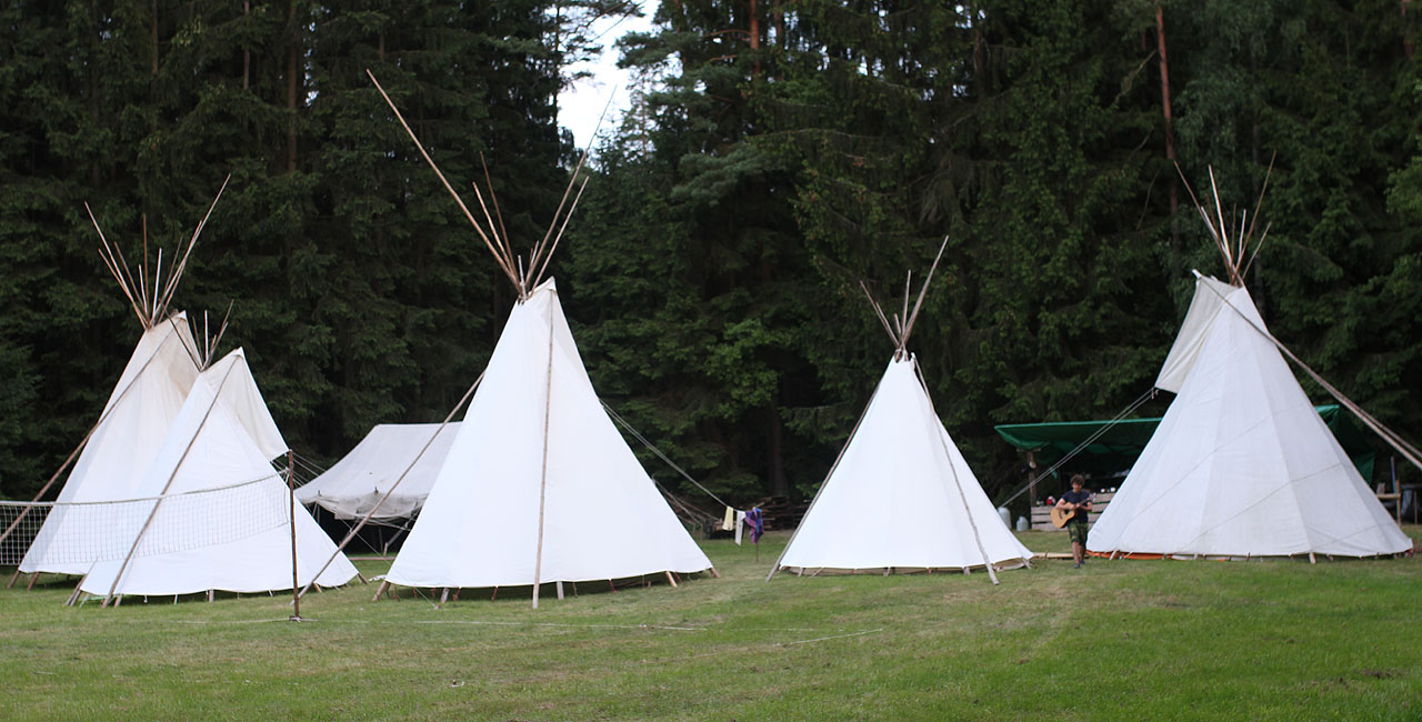 Týpí bude letos na táboře pět, místo kuchyňáku pak postavili vedoucí na táboře starobylý námořnický hangár.