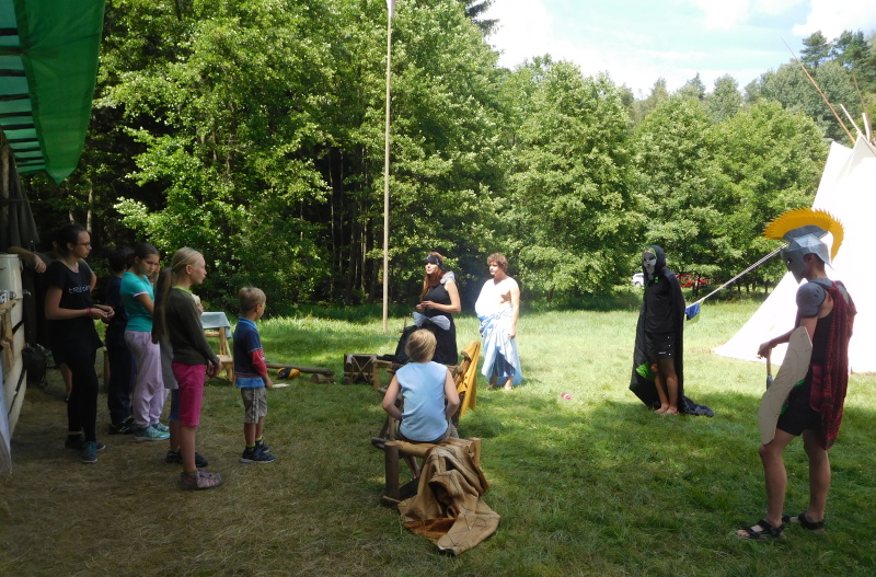 V neděli se pak úvodní scénkou rozeběhla také celotáborová hra na motivy řeckých bohů.