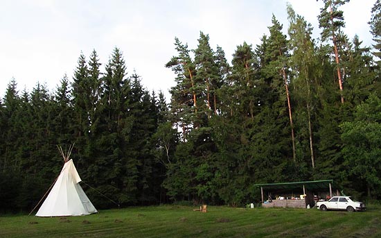 Protože se téhož večera kamarád Sova následkem útoků bzikavek zbláznil, donutil nás při uplatnění své autority k dodělání střechy kuchyně ještě v noci a tak nebylo v sobotu vlastně co dělat. Drobek hrabala trávu, které se v bažině urodilo letos stejně jako loni, kdy Stopařův táta louku zapálil, Svišť 2 se hned ráno ztratil v houští se slovy, že „jde kopat latrínu“ a vynořil se až večer, Sova stavěl sám týpí (měl jen trošku problémy se zvedáním trojnohy) a já jsem si to všechno fotil. K odpoldnímu už Drobkovi došla trpělivost a odjela, ale nahradila ji Ovce, která přijela Stopařovou zkrtakou, pročež se pár hodin zdržela, až se jí kopýtka smýkala na pedálech. Nezbývalo, než konstatovat, že voda v rybníku je až neslušně teplá, a to i po vydatné bouřce, která se ji pokusila ochladit dávkou ledových krup. „Tak zítra to rozjedem“, ujišťovali jsme se na prázdné louce, když jsme šli spát mezi hromady jídla a hrnce na podlaze kuchyně.