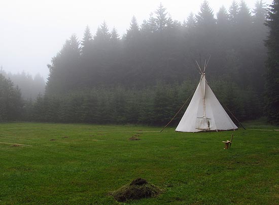 | Druhý den stálo v bažině jen jediné týpí. |