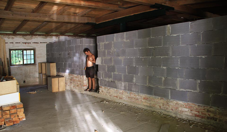 Dodávka čerstvého písku na betonování podlah ve zbývajících místnostech Muny.