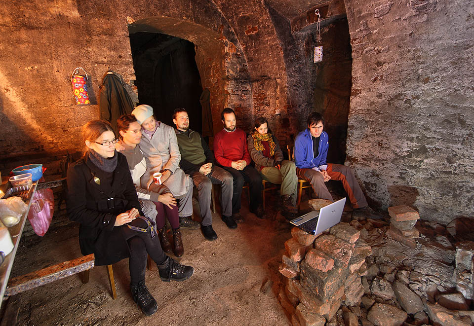 | Tradiční oslava Vánoc jihomoravské pobočky SPJF Perpetua se nesla - jak jinak - než v podzemním duchu. Ve sklepení „pod čápem“ v Brně jsme si promítli výánoční díl seriálu Černé zrcadlo, Drobek uvařila ovocný punč, Pája zahrála ve sklepním klenutí na housle a domluvili jsme se, co všechno prozkoumáme příští rok. |