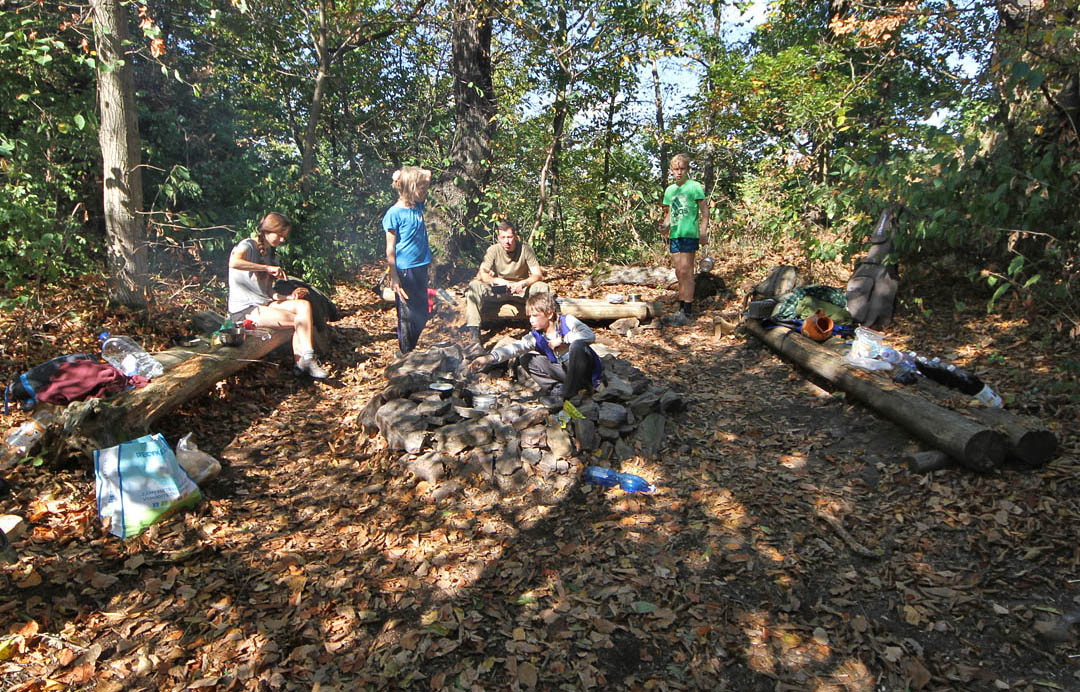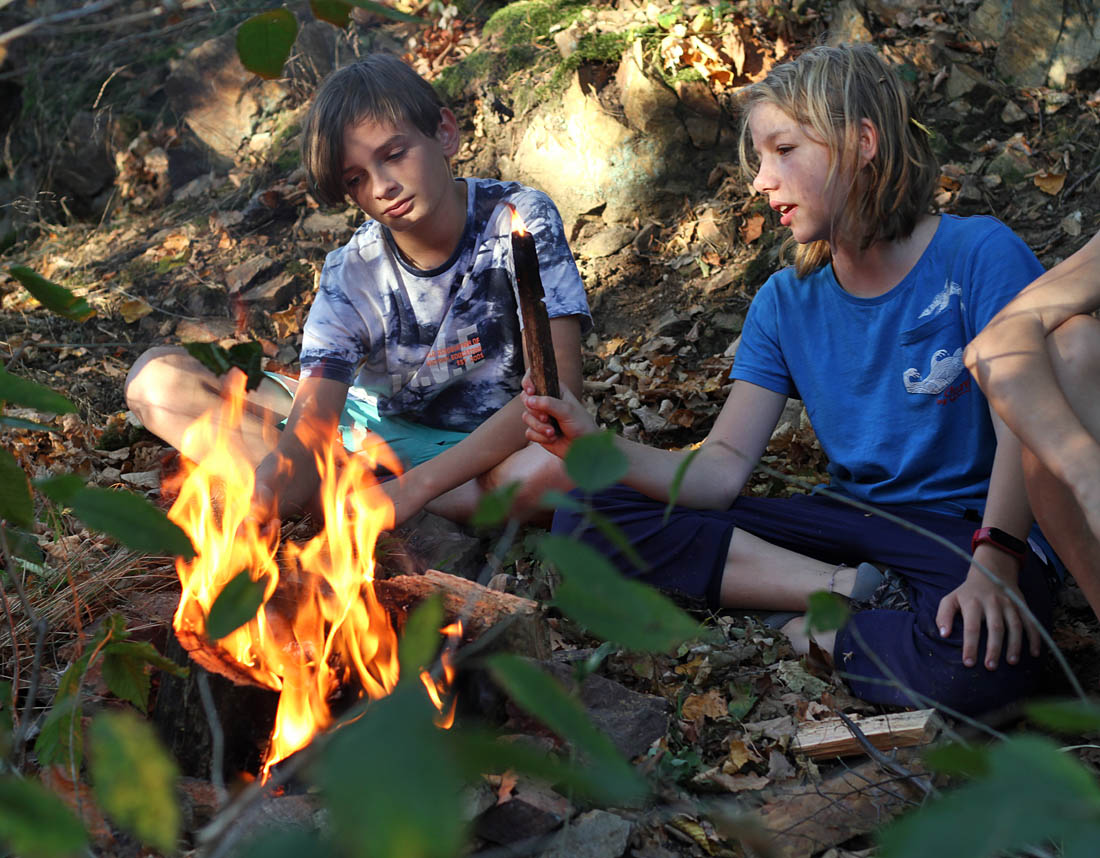 Bořis a Bedýnka u „malého ohně“ při přípravě fagule.