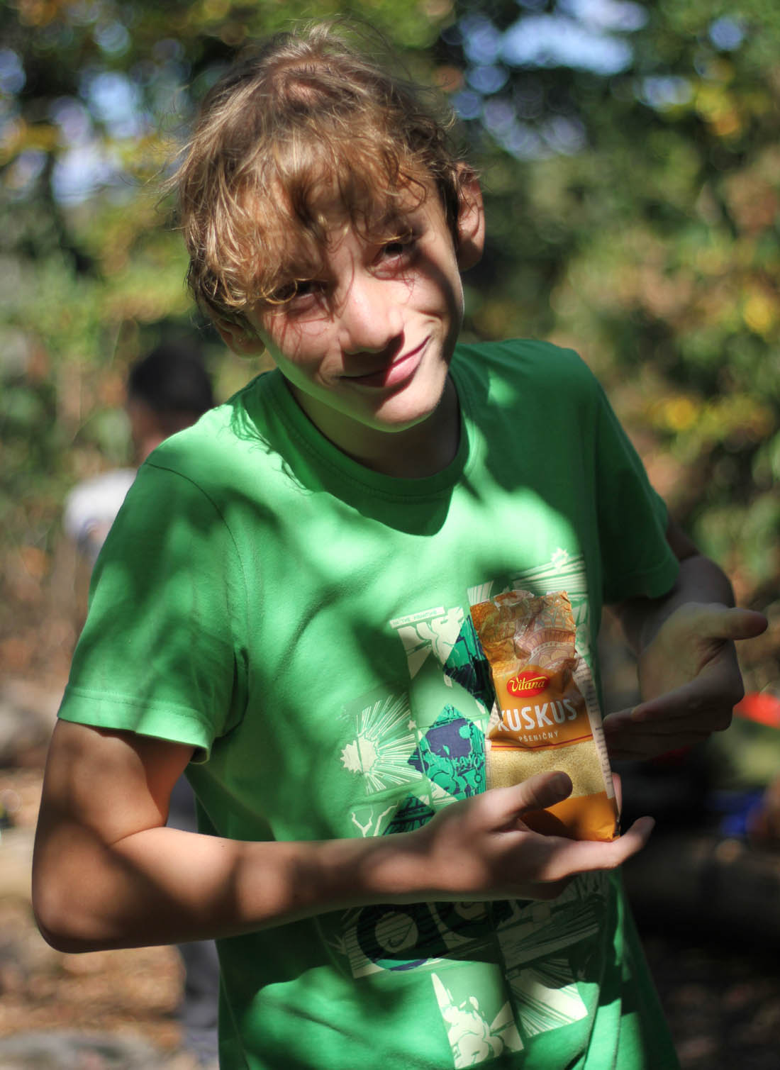 Kruton to zajídá kuskusem. Syrovým, vodu z ešusu pokaždé vylil.