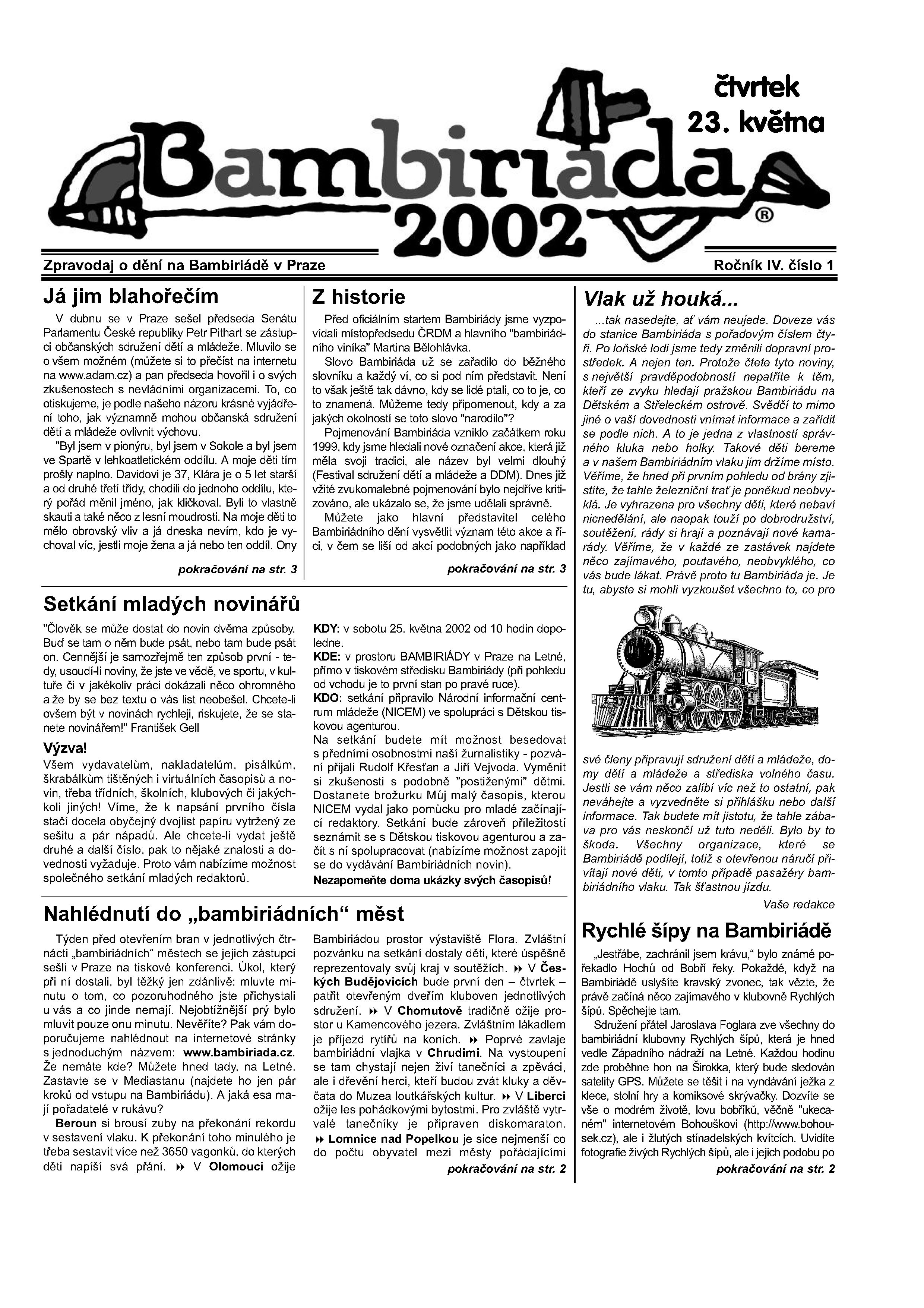 Bambiriádní noviny s článkem RŠ na Bambiriádě.