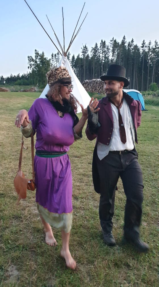 Přijeli kamarádi Filip a Alma, kteří se nabídli k hlídání tábořiště během závěrečky. Děkujeme za to!