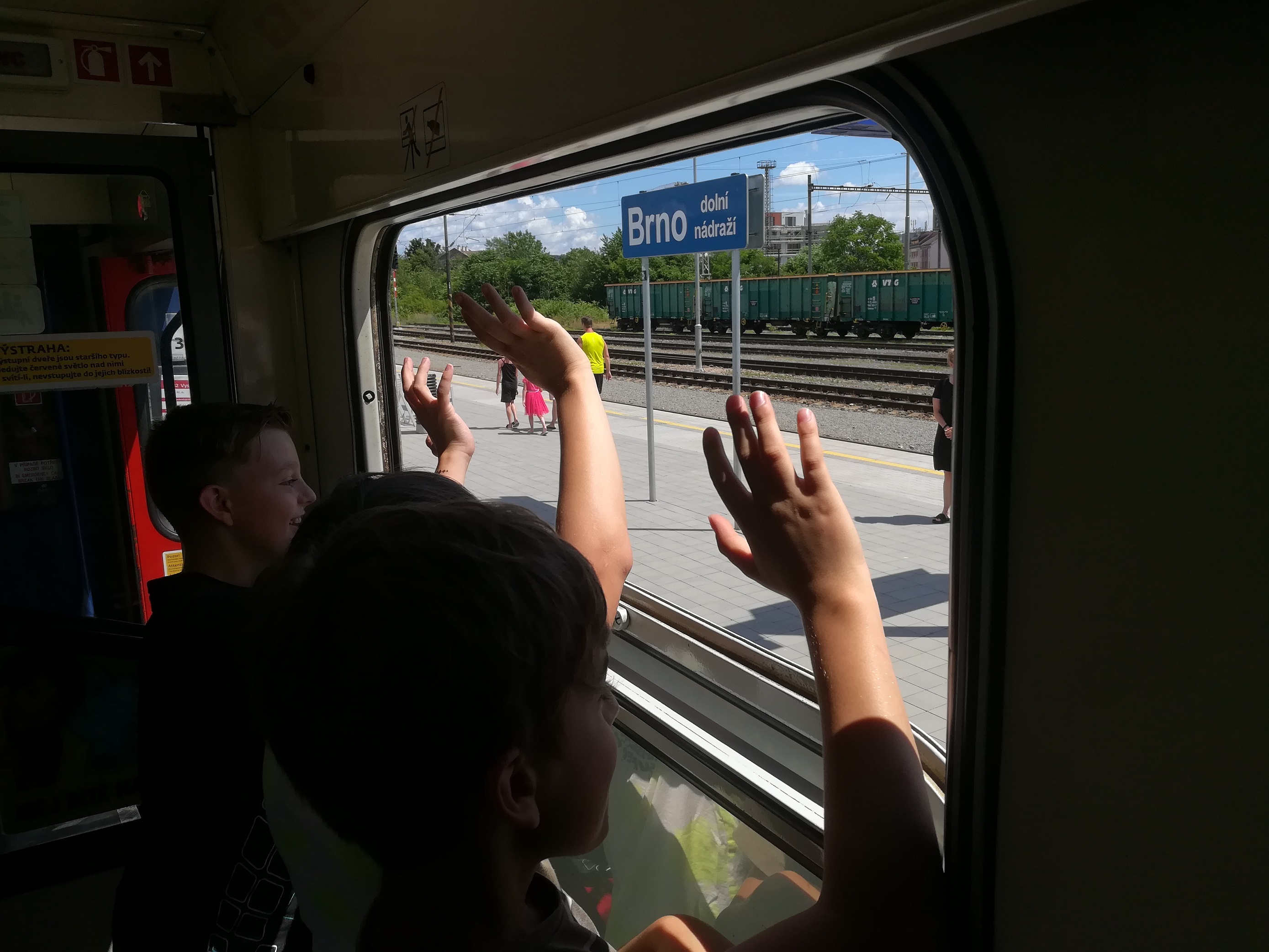 V pondělním poledni proběhlo v Brně předání části táborníků hlavnímu vedoucímu Přemovi. Jela zejména domácí část tábornictva, která byla navíc z velké části složena z ragbystů, kteří jsou již na Přemu zvyklí z hřiště :P Jsme rádi, že po prvotním zmatení při přesunu na nástupiště rodiče své děti ihned nevezli domů. Jak řekl Hugo: „Přemo, jsme teprve na nádraží a ty už ses stihl ztratit!“