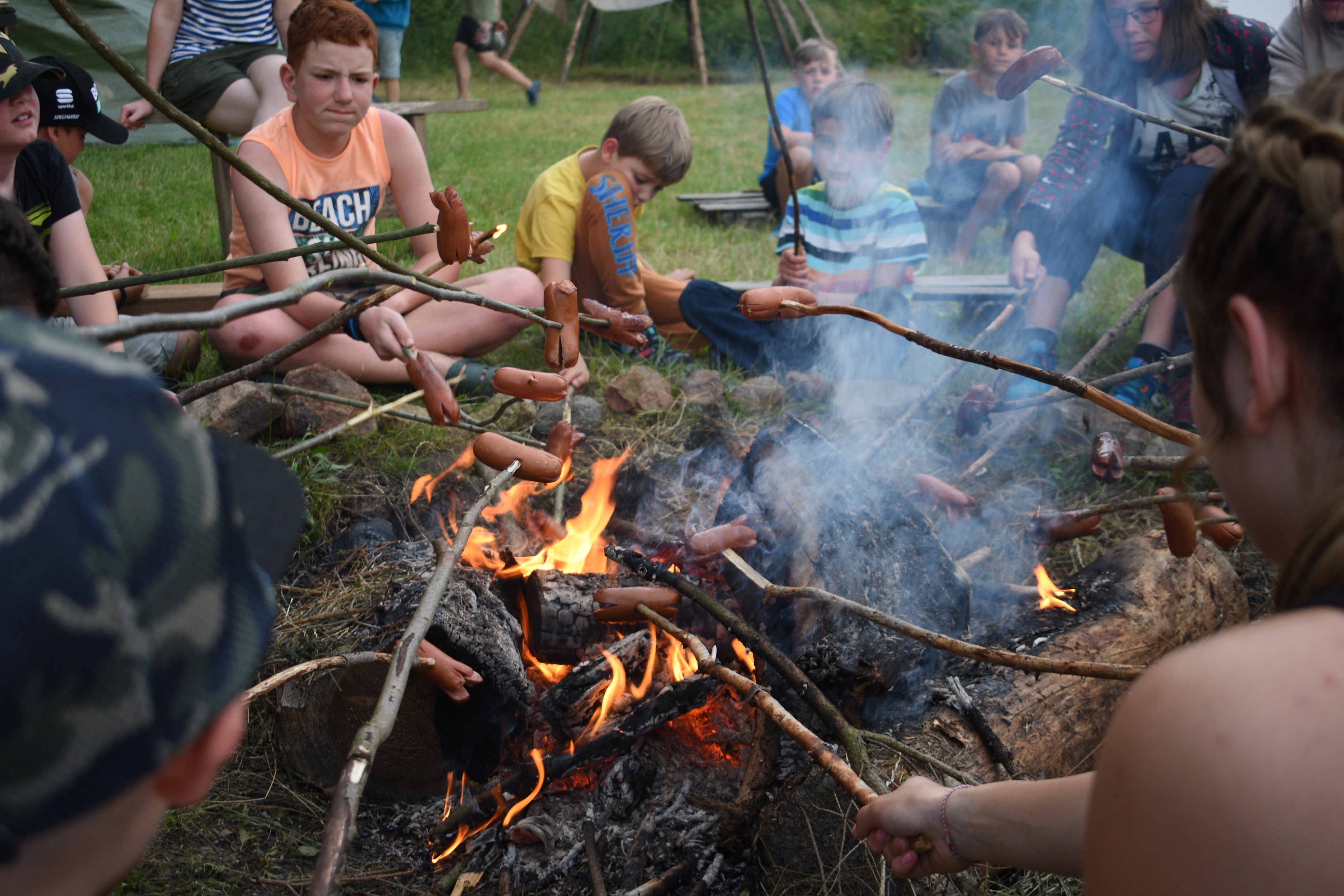Před setměním pak bylo místo pro tradiční prvovečerní večeři: Seznamovací špekáčky.