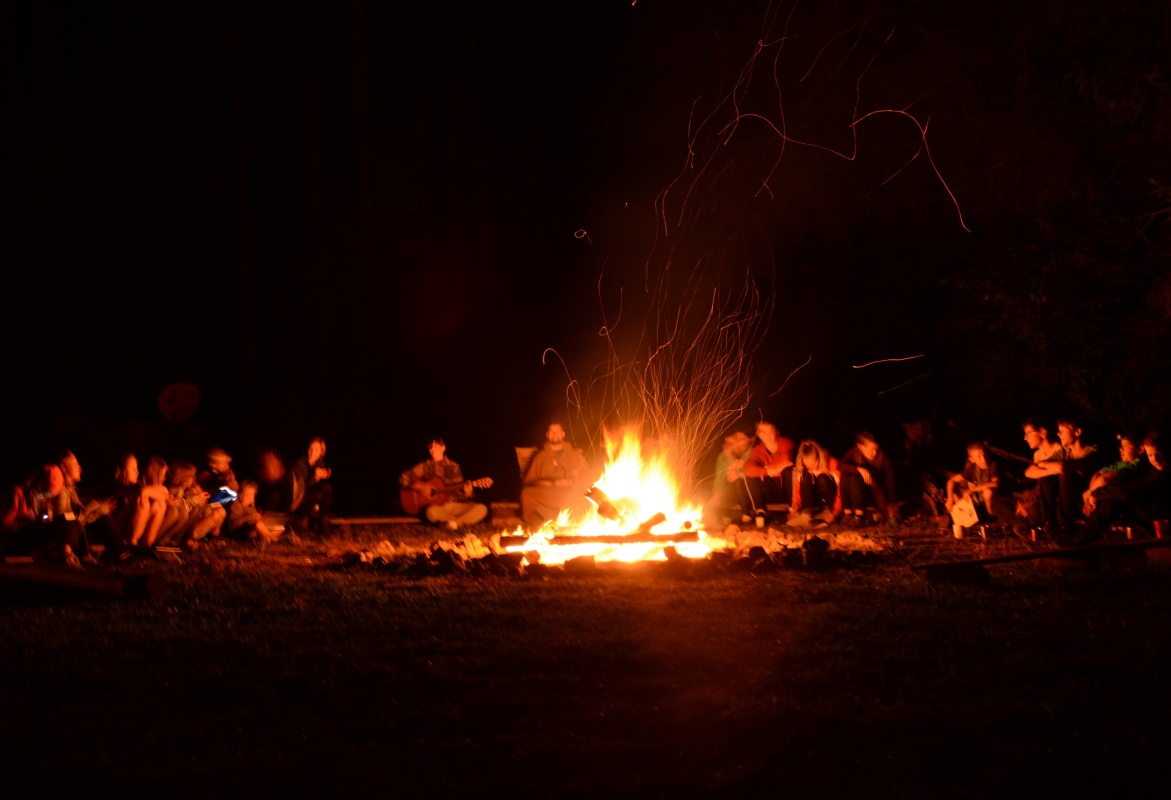 Sobotní den ukončil druhý slavnostní oheň, u kterého jsme na chvilku uvítali Jiřinku s dětmi, která pořádala tábor rodičů s malými dětmi před námi a přišla se inspirovat. Nechyběl ani Raptor, který se s námi rozhodl strávit den a noc navíc a zodpovědně vykonával čestnou funkci ohnivce.