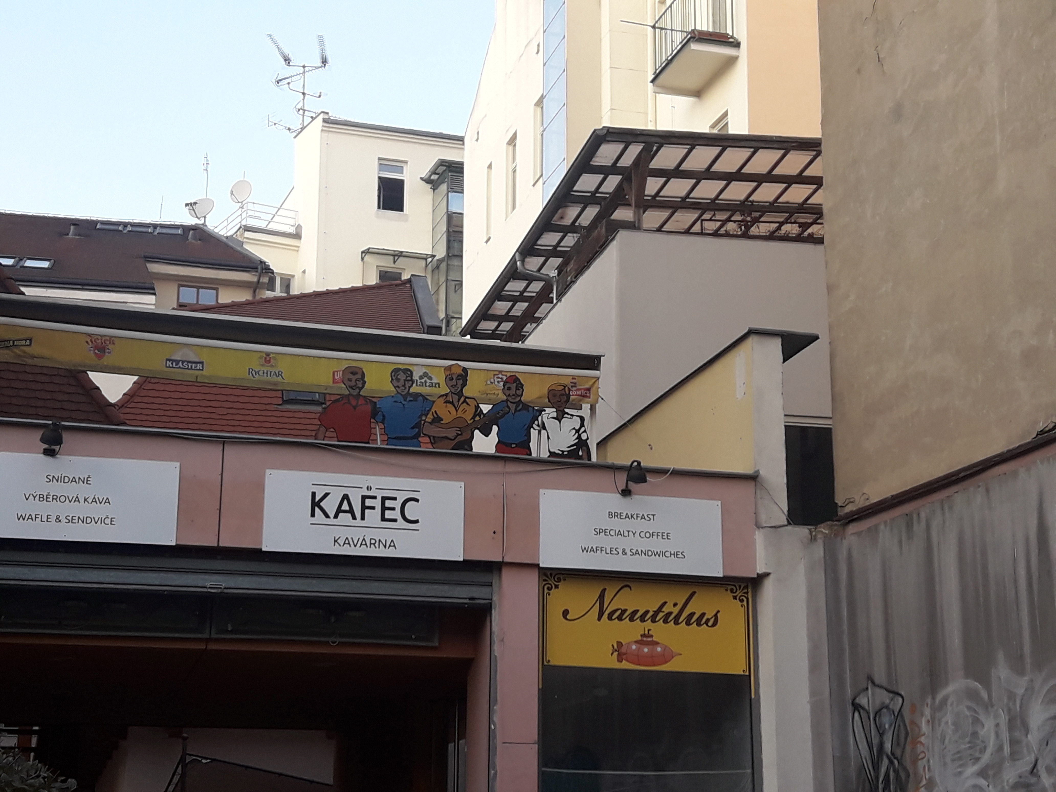 Do starobylé židovské čtvrti se Rychlé šípy zatoulaly v Třebíči. Jarka Metelka se skryl trochu do stínu, zbytek pětice byl ale vidět celkem hezky, kdo tedy prošel kolem firmy Kapucín, nemohl je minout.