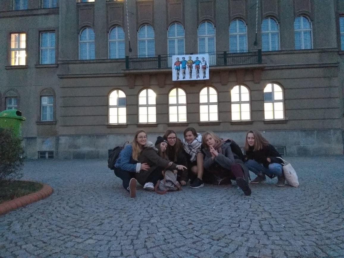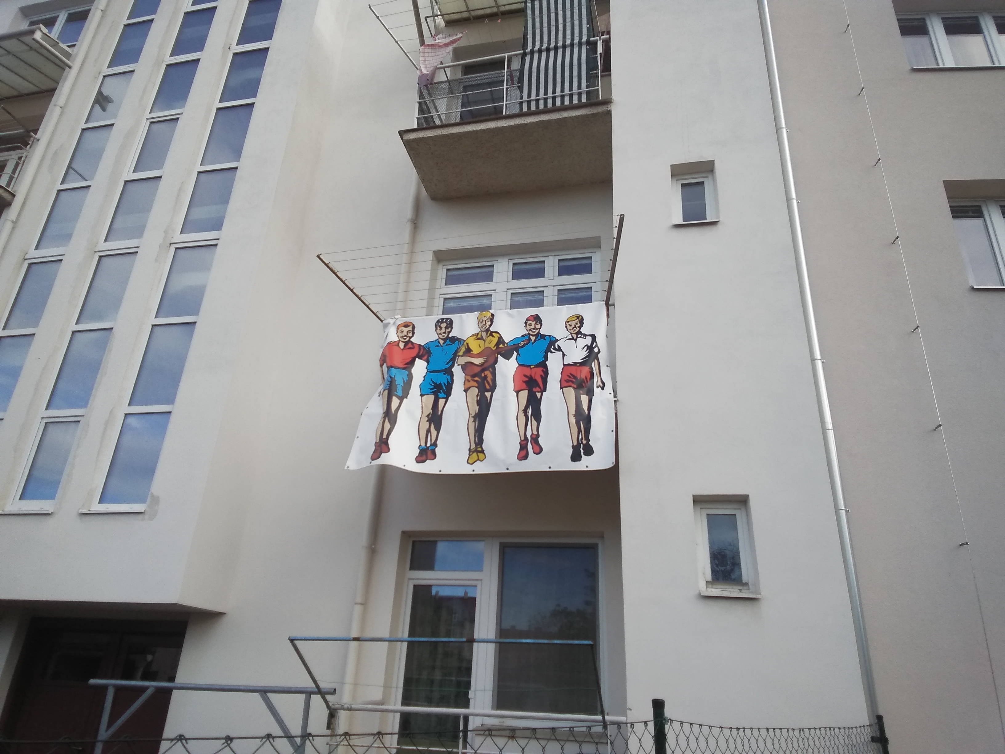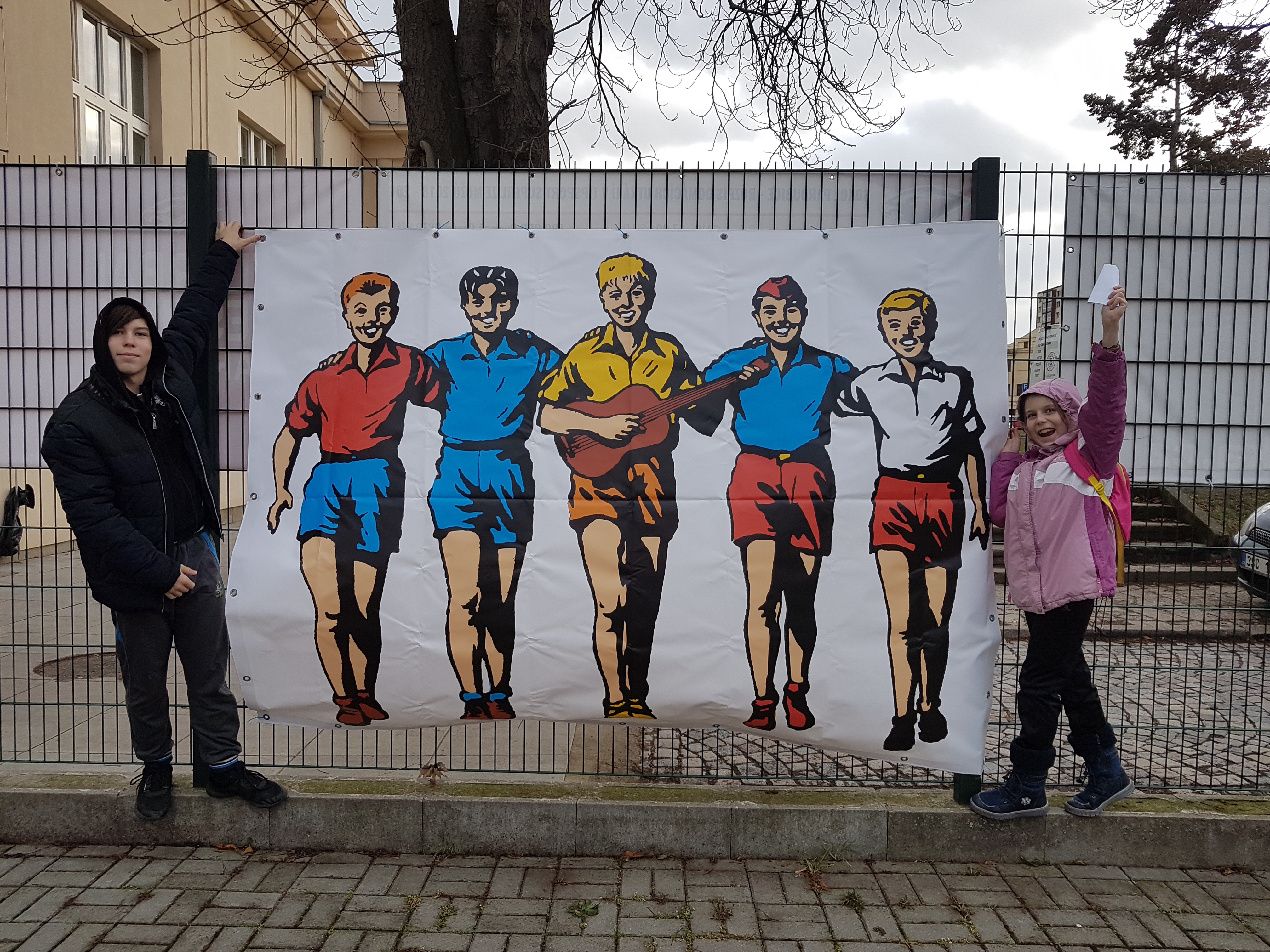V Plzni viseli Šípáci v celé své kráse z balkonu základní školy na Jiráskově náměstí.