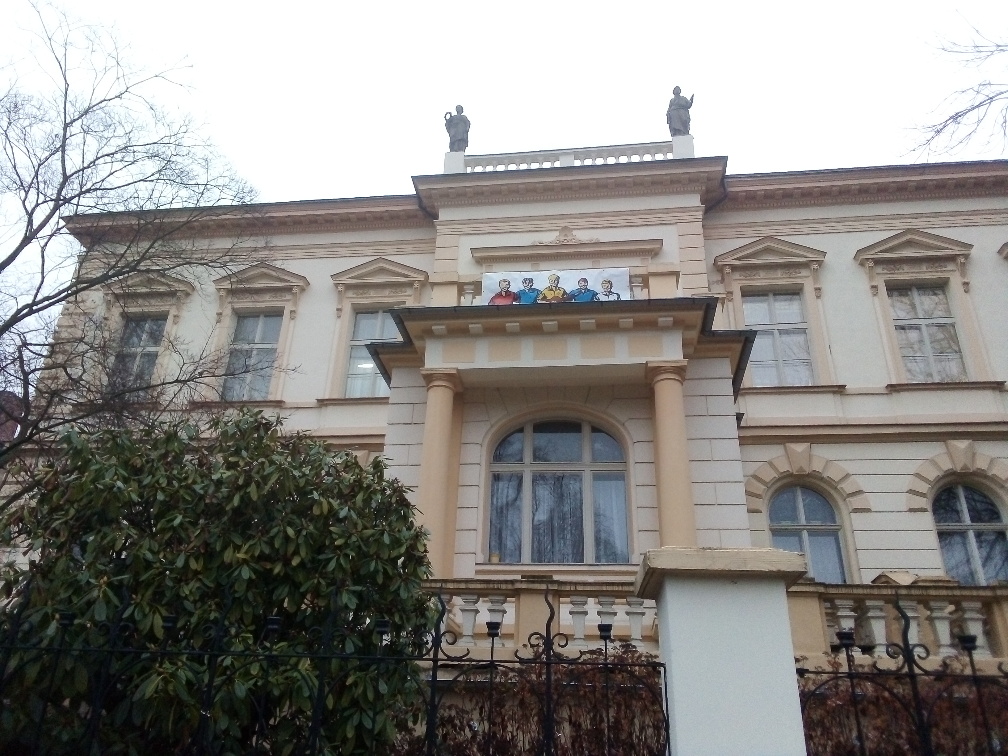 Na krásný balkon městské knihovny se Rychlé šípy vyšplhaly v Teplicích.