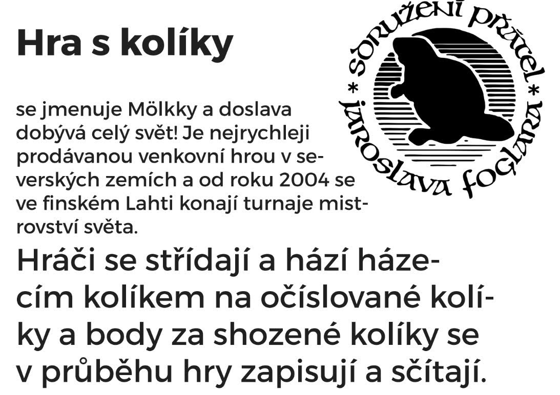 se jmenuje Mölkky a doslava dobývá celý svět! Je nejrychleji prodávanou venkovní hrou v severských zemích a od roku 2004 se ve finském Lahti konají turnaje mistrovství světa. Hraje se i na táboře Hochů od Bobří řeky.