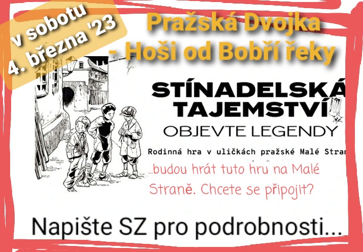SNJF připravila v Praze na Malé Straně pátrací hru pro veřejnost, která byla základem městské hry oddílu Pražská Dvojka – Hoši od Bobří řeky v sobotu 4. března 2023.