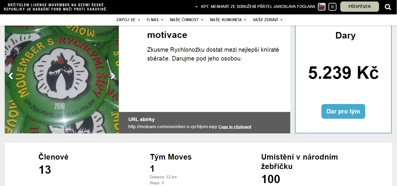 Myslím, že cíl "Rychlonožka mezi nejlepšími" se ovědčil. Za měsíc akce neklesl z elitní Nulté stovky. Dokonce i dárcovství s 0 Kč na svém osobním účtu nevadilo, ač o tom byly při počátku letošního Moveberu s RŠ diskuze. Dokonce jsme byli inspirativní pro jiný tým Movember se skautskými osobnostmi, kteří nakonec taky zůstali s nulou a vše darovali pod ABS. Podívejte se zde. Takže bez peněz do Movemberu nelez neplatilo ani u našeho partnerského Motýmu.