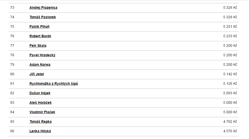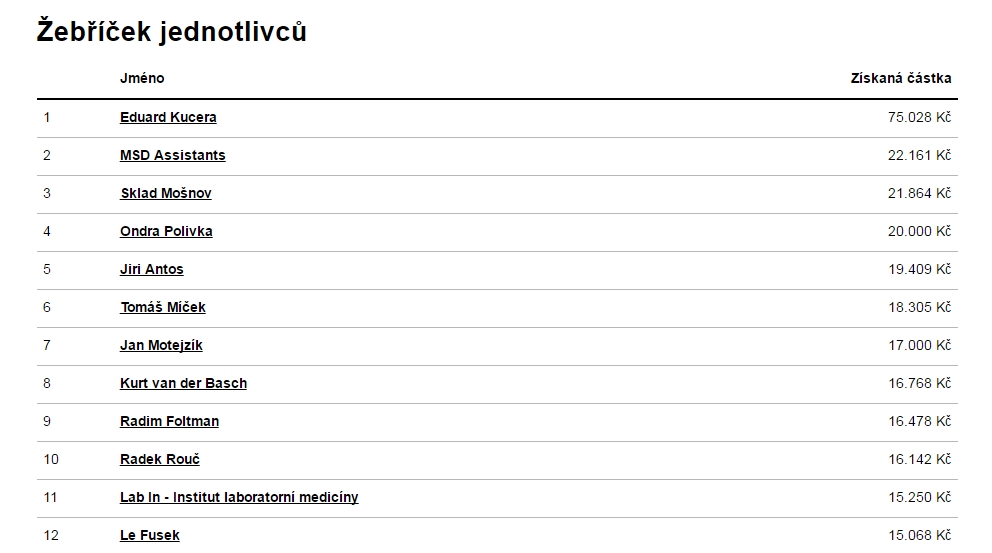 Kdyby se nás zapojilo více než 13, také by byla šance vybrat více. S 25 tisíci by byl letos Rychlonožka na 2. místě. První vybral 75 tisíc.