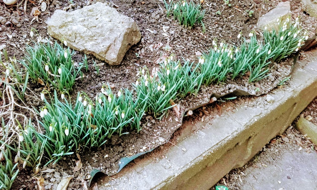 Rozkvétaly i další jarní květninky na místní skalce, ale já chtěl nafotit dům a okna bytu Jaroslava Foglara ze strany vnitrobloku, protože jsem si uvědomil, že jsem ještě žádnou fotografii domu z této strany neviděl.