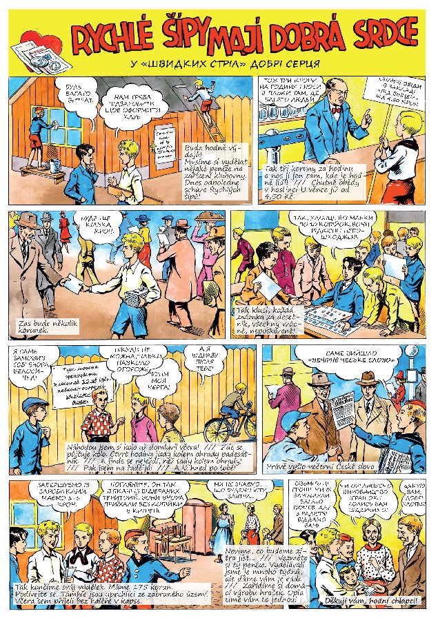 Posílám pozdrav všem organizátorům minivýstavy komiksů Rychlých šípů v ukrajinštině, kteří se přihlásili na základě výzvy ZDE a sděluji, že všechny příběhy s ukrajinskými bublinami ve formátu A3 mají také český text - viz ukázka.