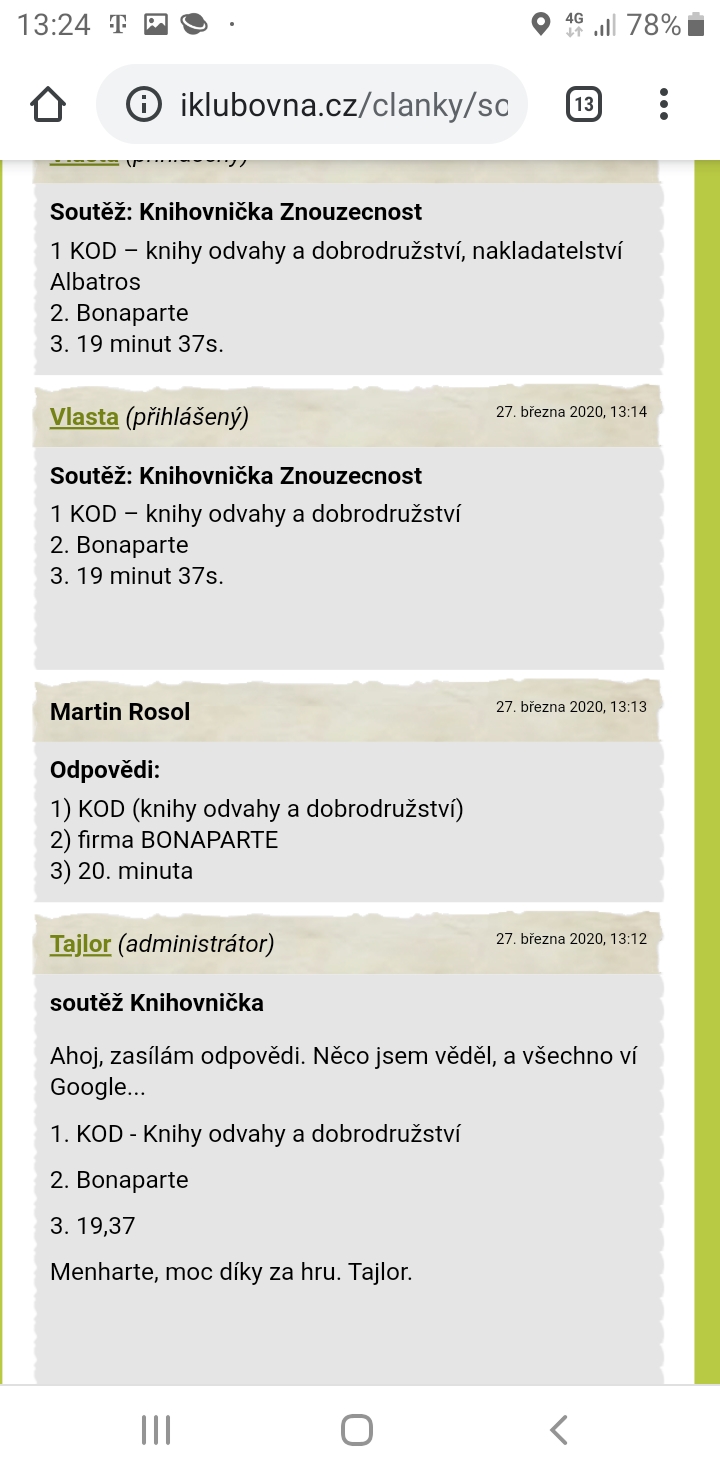 Zdravíme i další čtenáře iKlubovny a všechny klubaře.