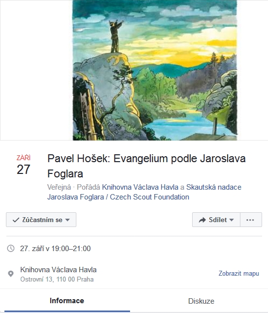 Všechny zdravím z Prahy a připomínám, že Skautská nadace Jaroslava Foglara a Knihovna Václava Havla pořádají večer k připomenutí výročí JF ZDE.