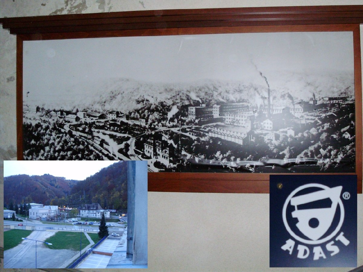 Velkoformátové foto Adamova z počátku minulého století umístěné na recepci v bývalé budově ADAST headquarters.