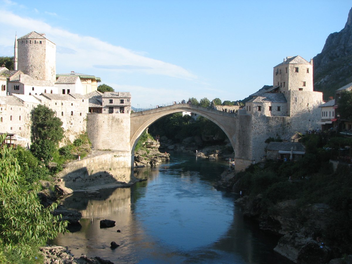Most spojující muslimskou a chorvatskou část turisticky známého města Mostar, který byl za občaské války v Jugoslávii roku 1992 zničen.