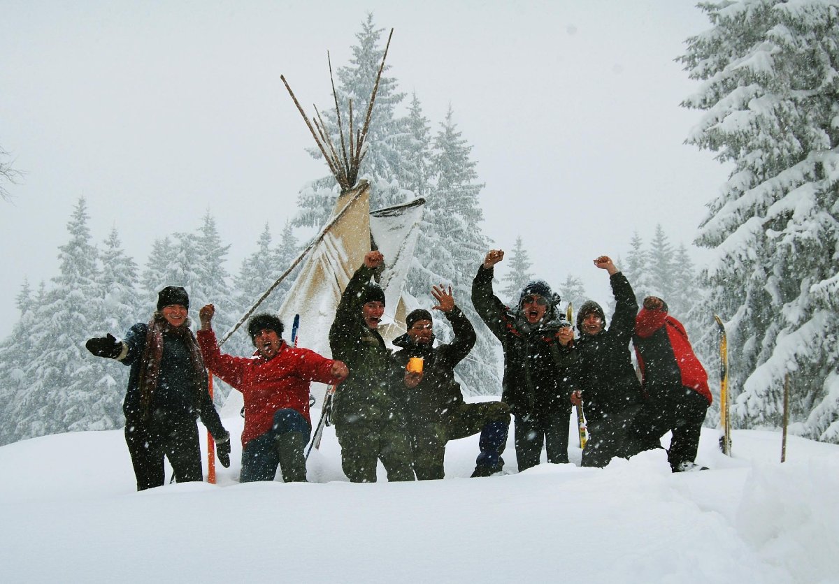 Fotografie pořízená v pátek 17.2. zachycuje sedm statečných, kteří se letos zúčastnili expedice na Manaslu. Zimní tábor SPJF motivovaný výstupem Reinholda Mesnera na stejnojmenou himálajskou osmitiscícovku připravil letos na hřebenu Vsetínských vrchů odpovídající extrémní podmínky.