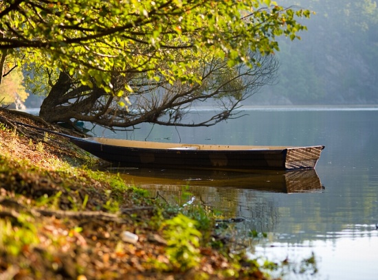 Autorem této fotografie je Ďábel, ale mně nedá se s vámi o ni nepodělit. Barevné listí babího léta a rybářské bárky krásně oživily okolí trampského srubu Prasklý džbán.