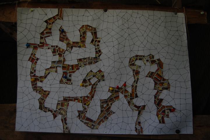 Během celého tábora jednotlivé družinky usilovně pátraly ve spletitých stínadelských uličkách a nalezené artefakty jim nakonec prozradily své tajemství: Hledejte v domě s podloubím. Ovšem kde bude jejich pátrání začínat, se dozvěděli až poslední den před začátkem jejich putování, když se jim podařilo propojit červené křížky na tajemné mapě.