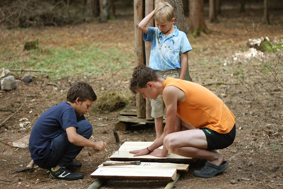 Ačkoliv většina táborníků jela na tábor s Bobří stopou poprvé, na louce nebylo zdaleka všechno nachystáno a hotovo. Každý si musel vyrobit nebo spravit svoji postel, všichni se naučili, jak se staví týpí a liningy se věšely a ohniště kopala až do pozdního večera. První zkušenosti na sebe nenechaly dlouho čekat.