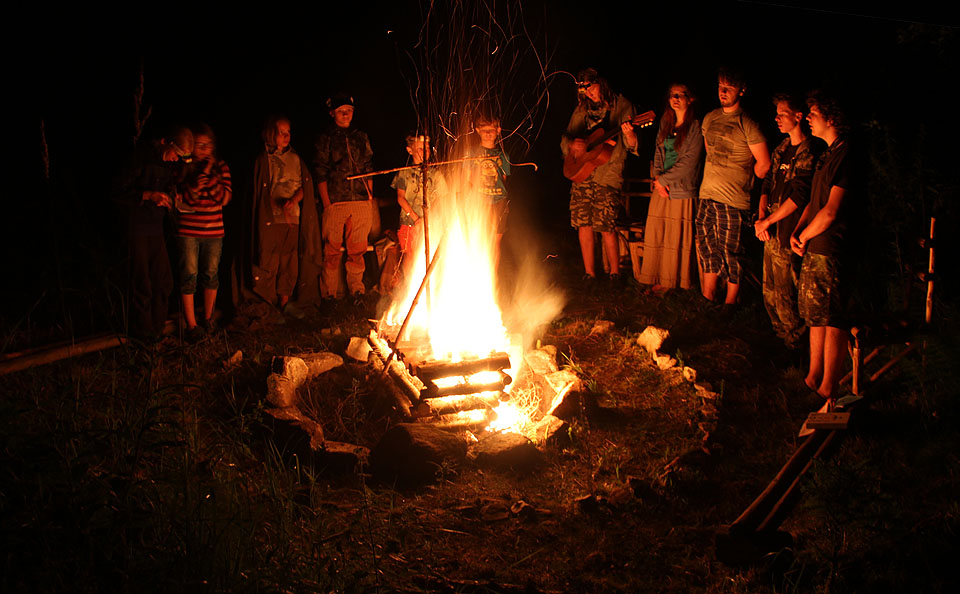 Když jsme byli v nejlepším, najednou to skončilo. Závěrečný táborový oheň byl o něco živější, protože se vrátili všichni těžce i lehce nemocní a dokonce přišli i úplně cizí náhodní kolemjdoucí.