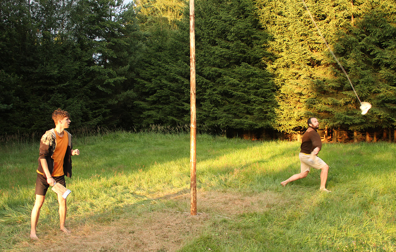 Po prvním přepadu a ostrakizaci zpupných vetřelců jsme vyvinuli bezprecedentní metodu provlékání jehly uchem velblouda. Díky tomu jsme nemuseli kácet stožár s přeřezanými lanky a stačilo zhruba hodinu tancovat se svázanými týpákovkami a čtveřicí provazů po louce.