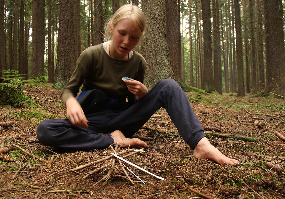 Jasmínka se snaží rozdělat oheň, aby zahnala krvežíznivé vlky, útočící z okolních lesů (jednoho jsme chytili a odvezli do Polné).