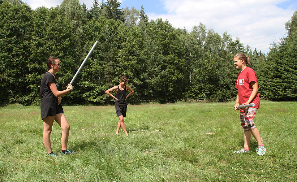 Na táboře bylo dost hmyzu. Liška proto vymyslela způsob, jak zabíjet komáry dřevěnou pálkou.
