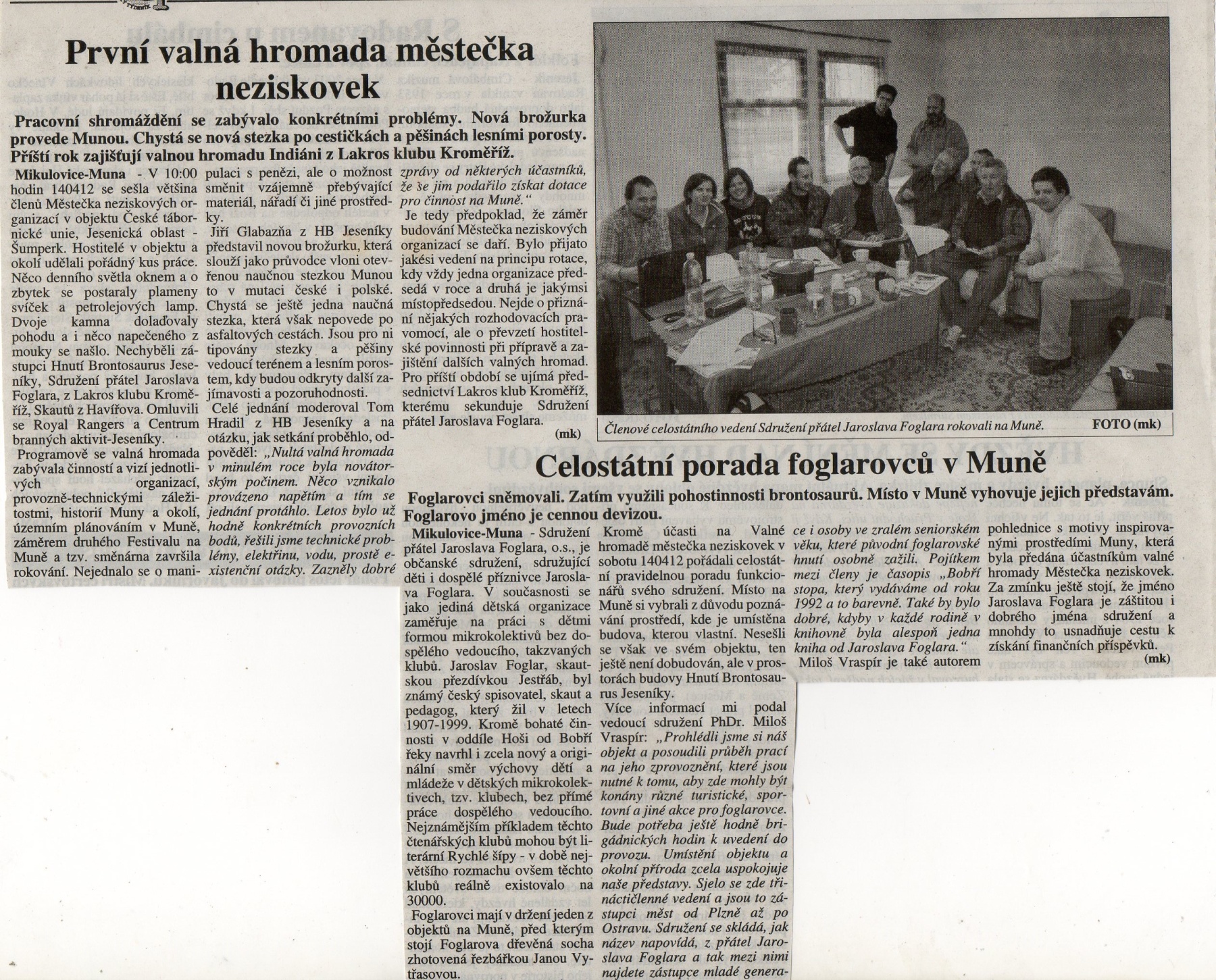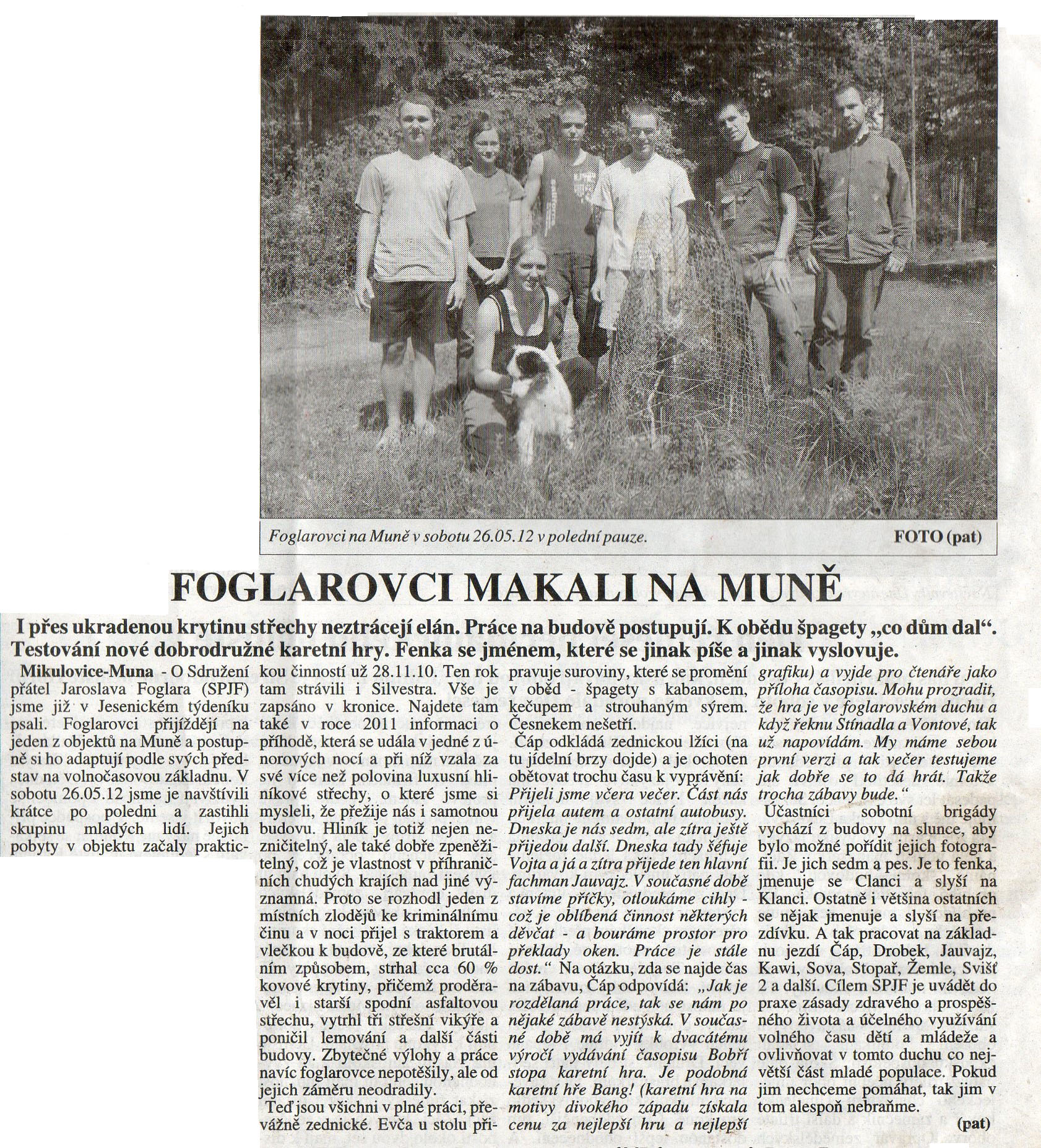 Obrázek ke článku O Muně v tiskovináchAktivity na Muně nezůstávají stranou ani zdejšímu tisku, zde můžete zhlédnout to, co už o nás vyšlo.
