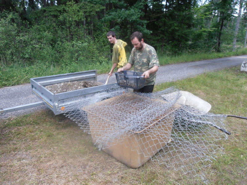 V pátek ráno nás opustila Píďa a o něco později i Drobek. Doplnění stavů naopak zajistil Romain. S ním jsme se jali vybetonovat základy nových zdí (budoucího záchodu) a postupně (s přesahem až do neděle) instalovat nové plastové okapy v zadní části budovy. Čáp dokončil rozvody elektřiny ve zbylé části poloviny budovy a zprovoznil také první lustr v malé klubovně. Já s Čápem jsme také provedli v Polsku nákup záchodových mís.