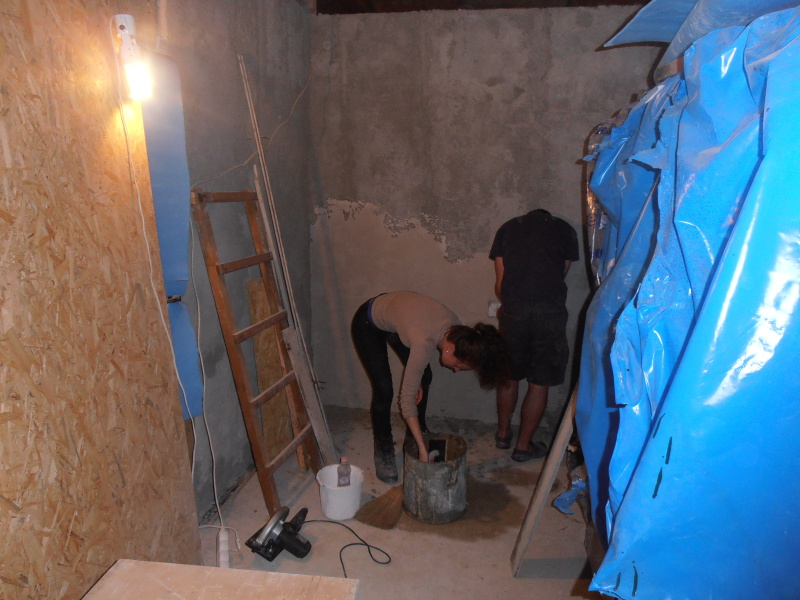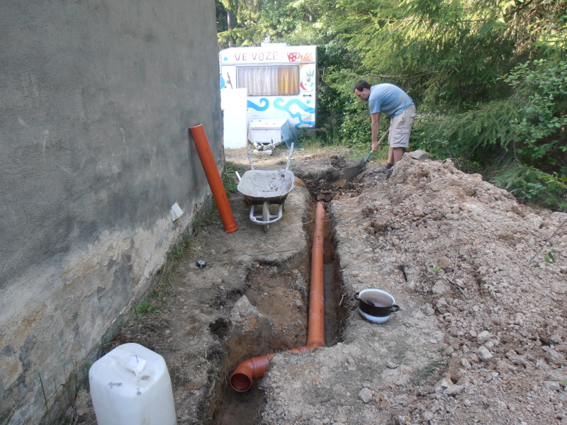 V pátek nás opustili Ilič a Píďa, večer při pokládání potrubí ale opět dorazil Vojta, takže jsme stále byli údernou jednotkou. Po nákupu chybějícího potrubí jsme během druhého víkendu celou jeho délku položili a výkop zasypali. Mezitím bylo potřeba řešit problémy s rozbitým vozíkem a Jerry se pustil do výroby stropu v malých pokojících, které budou už brzy rozděleny sádrokartonovou přepážkou.