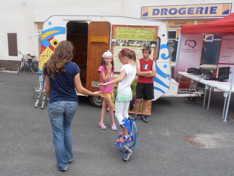 Karavana snů a stánek Městečka neziskovek na Muně Skákací boty opět válely